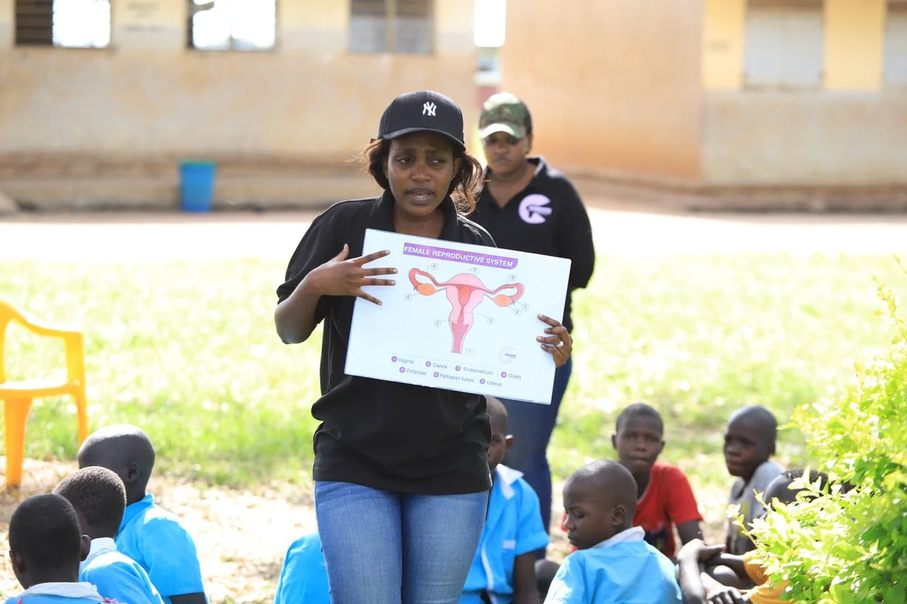 In focus groups with girls, Lizza and her team learned girls were using soil, feathers, banana leaves, old clothes, and even cut-up mattresses to manage their periods. Many stayed home from school during menstruation, and some dropped out entirely, choosing early relationships as a way to access basic supplies. The conversations also showed parents were lacking information, leaving girls isolated and unsupported.